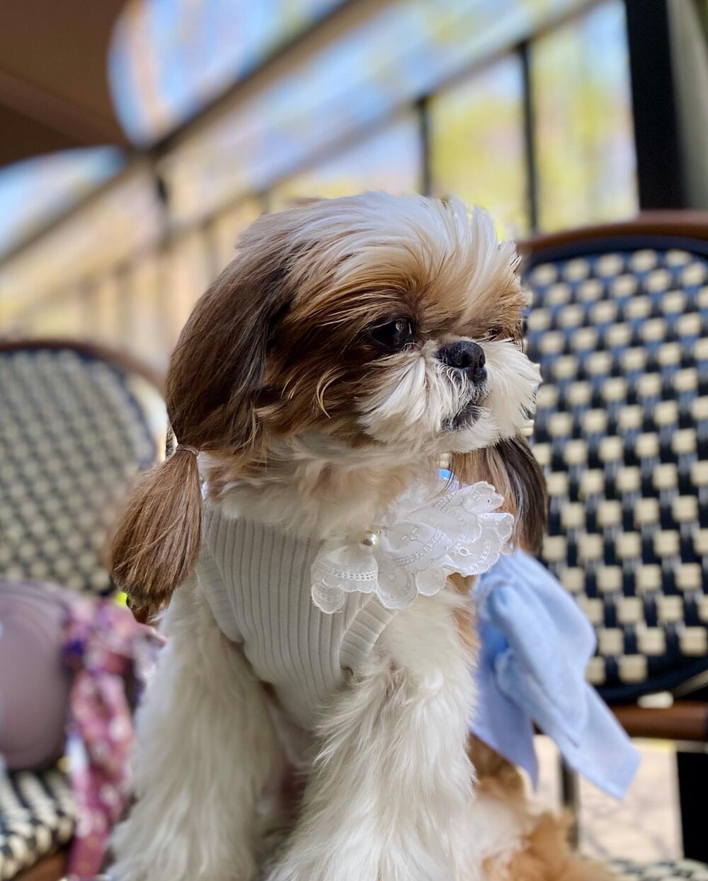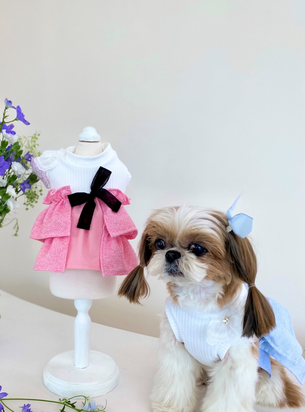 •시츄 만두 : 3.9-4kg / 가슴둘레 38.5cm / 등길이 28cm ►M착용