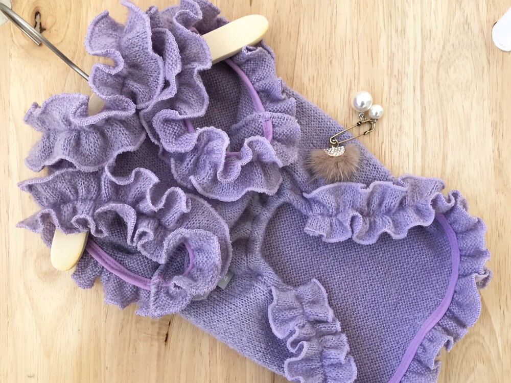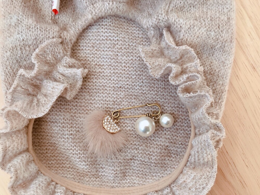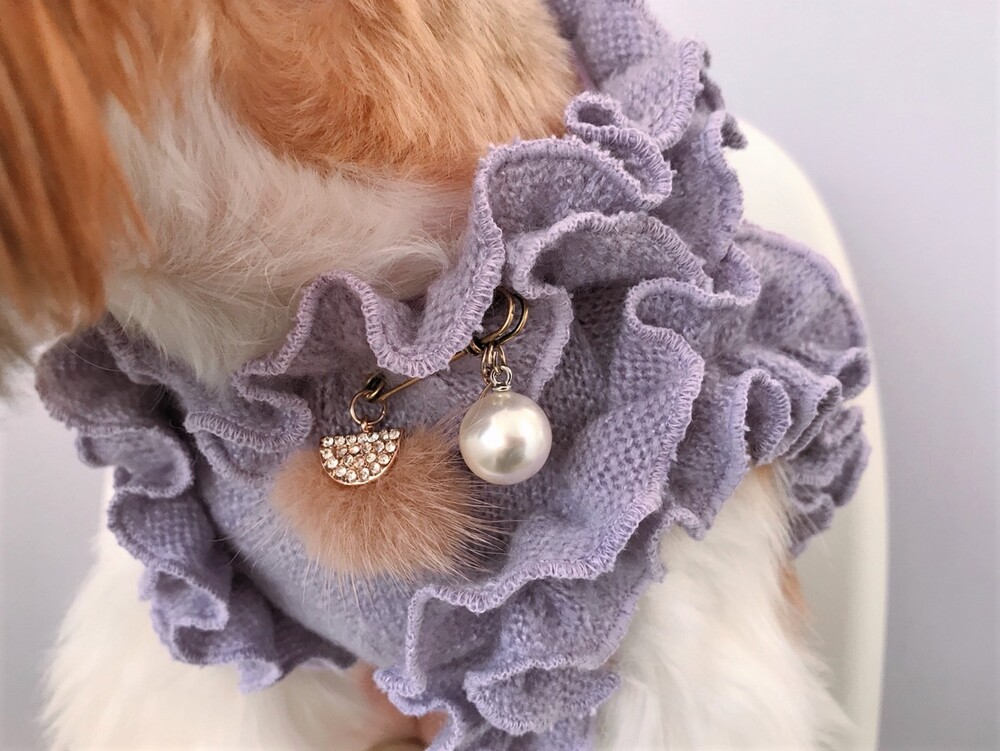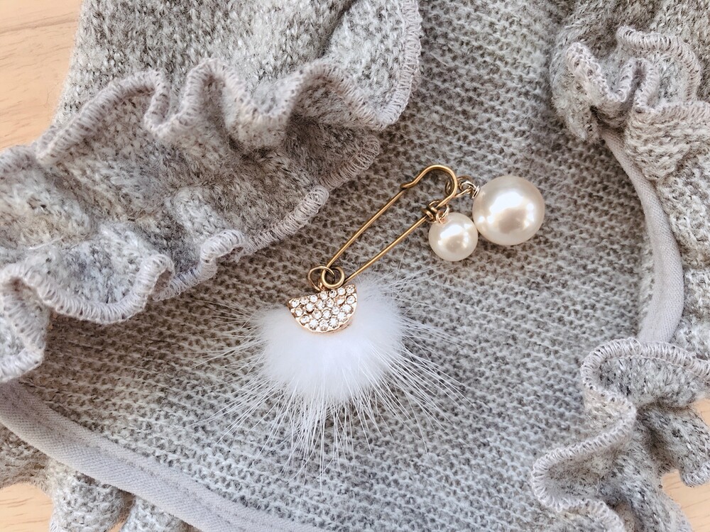 울 져지 프릴 / 크리스탈 밍크 브로치