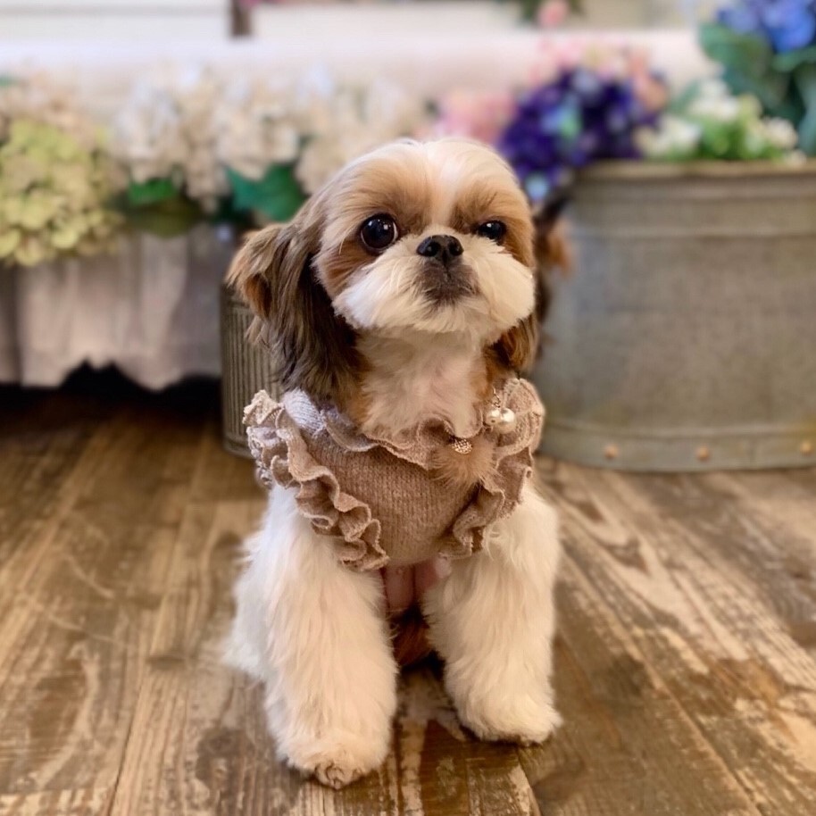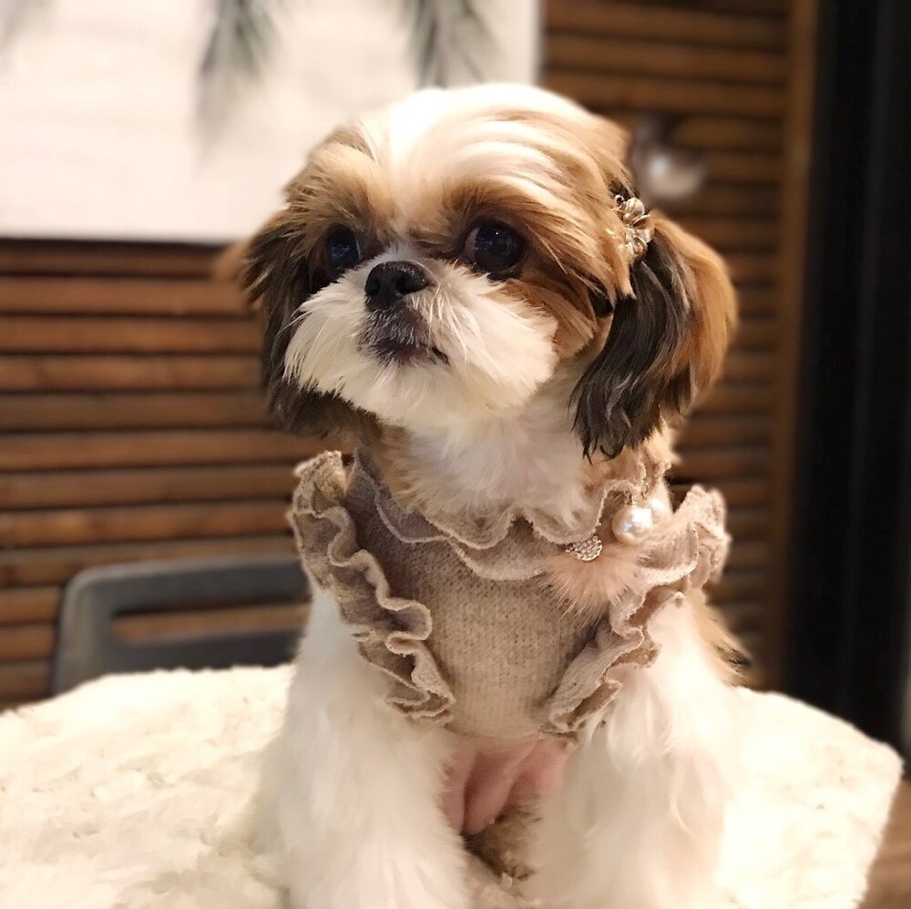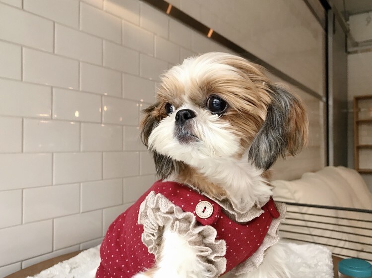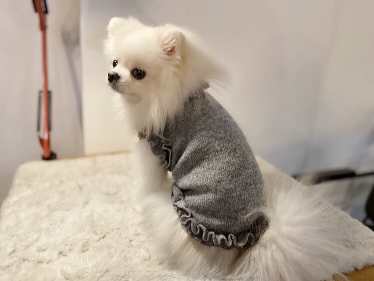 모델 럭키 : 2.6kg / 가슴둘레 31cm(풀콧상태 32cm) ►M착용 (평소 sm착용하나 풀콧으로 기른 상태여서 옷이 안보여 사진은 M착용) ►(아주 넉넉한 핏)